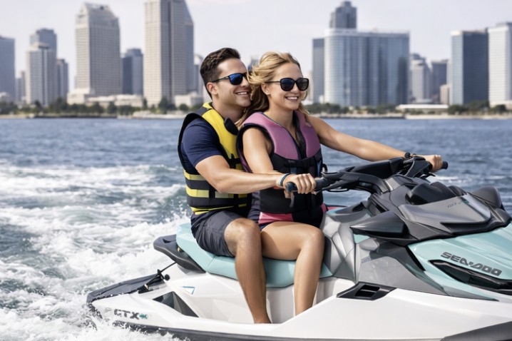San Diego Bay offers calm waters that are ideal for jet skiing. Riders enjoy scenic views of downtown San Diego, Coronado Island, and the surrounding harbor while experiencing the thrill of riding a high-performance jet ski. The bay’s protected conditions make it one of the best places in Southern California for jet ski rentals.